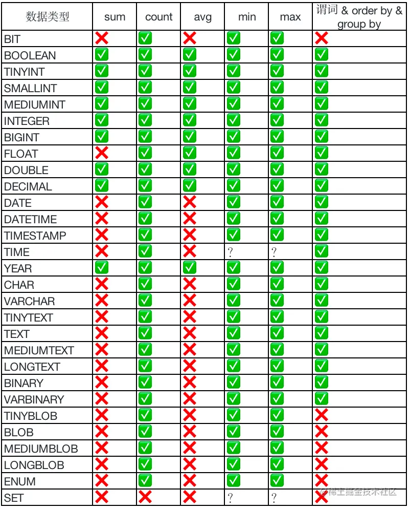 TiSpark 目前能够支持谓词下推,聚合下推,limit 下推,order by 下推,但有些类型无法下推,其支持情况如下表: