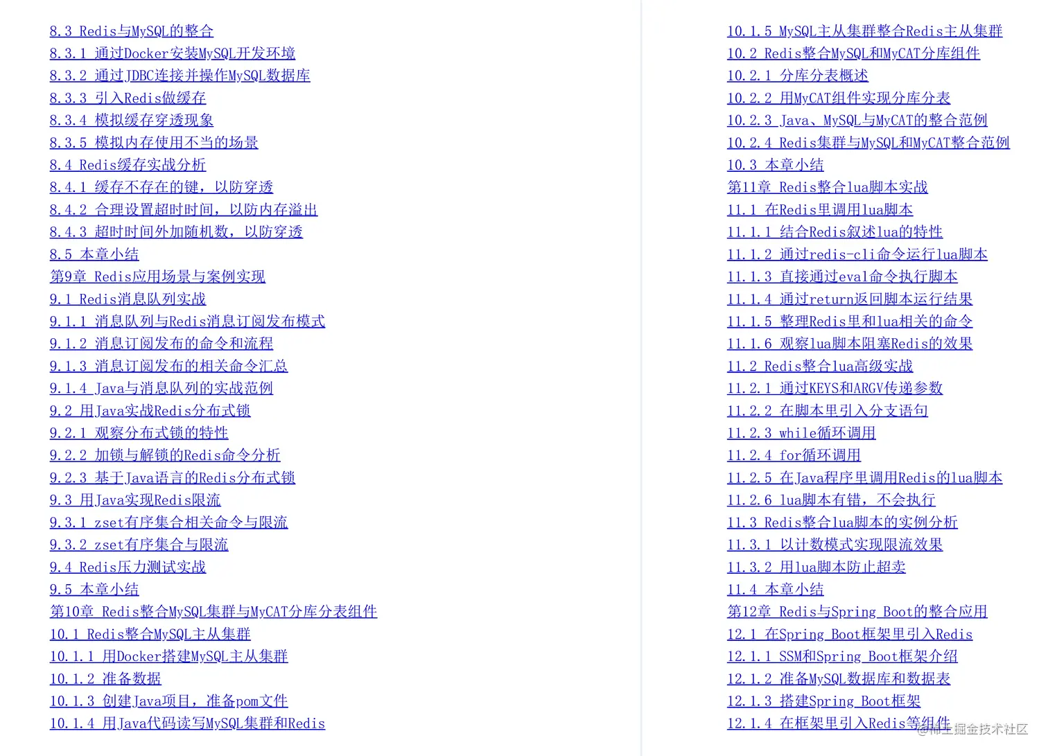 本手册分为13章,第1~7章主要介绍Redis入门知识、Redis基本数据类型、Redis常用命令、Redis服务器和客户端实践技巧、Redis数据库操作技巧、Redis AOF和RDB持久化操作技巧、Redis集群的搭建方式,第8~11章主要介绍Redis同MySQL和MyCAT集群的整合技巧、Redis同lua的整合技巧等,第12和13章主要介绍Redis、Spring Boot和Spring Cloud如何构建微服务应用。