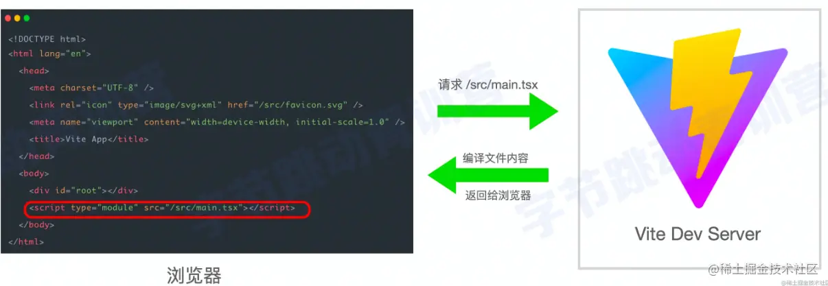 基于原生ESM的开发服务优势,Vite开发了一套Dev Server,基于ESM的服务,可以去除bundle的开销,按需编译。