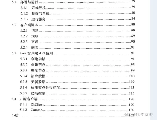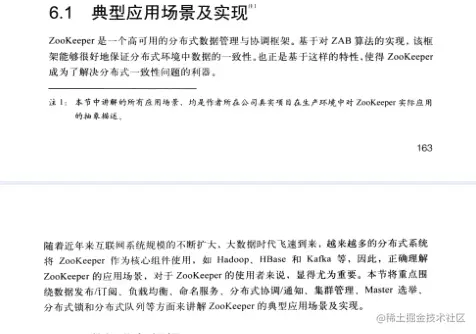 好了,到现在为止,在学习了前面几章的内容之后,相信读者已经能够在应用中很好地使用ZooKeeper 了。尤其在数据发布/门阅,负载均衡,命名服务、分布式协调通知,集群管理,Master 选举。分布式锁以及分布式队列等分布式场景中。能够很好地利用ZooKceper来解决实际的分布式问题了。
