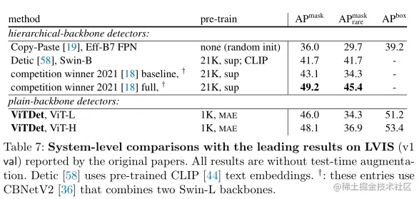 上表展示了与原始论文报告的 LVIS SOTA结果的系统级比较。