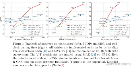 从这个角度来看,追求包含较少归纳偏差的主干变得合理,因为可以使用大规模数据和/或自监督来有效地训练主干。相比之下,检测任务特定组件的可用数据相对较少,并且仍可能受益于额外的归纳偏差。虽然追求具有较少感应偏差的检测头是一个活跃的工作领域,但像 DETR这样的领先方法难以训练并且仍然受益于特定于检测的先验知识。在这些观察的推动下,本文的工作在检测器的主干方面遵循了原始普通 ViT 论文的精神。虽然 ViT 论文的讨论侧重于减少平移等变的归纳偏差,但在本文的案例中,它是关于在主干中的尺度等变上减少甚至没有归纳偏差。作者认为普通骨干实现的尺度等变性是从数据中学习先验知识,类似于它如何在没有卷积的情况下学习平移等方差和局部性。