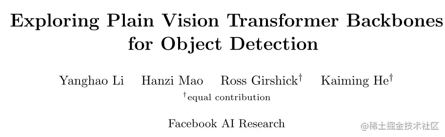 现代目标检测器通常由一个与检测任务无关的主干特征提取器和一组包含特定检测先验知识的颈部(neck)和头部(head)组成。颈部/头部中的常见组件可能包括RoI 操作 、区域建议网络 (RPN) 或锚点(Anchor)、特征金字塔网络 (FPN) 等。如果特定任务的颈部/头部的设计与骨干的设计脱钩,它们可能会并行发展。根据实验,目标检测研究受益于对通用主干和检测特定模块的很大程度上独立探索。长期以来,由于卷积网络 (ConvNet) 的实际设计,这些主干一直是多尺度、分层架构,这严重影响了用于检测多尺度对象的颈部/头部设计(例如,FPN )。 在过去的一年中,视觉Transformer (ViT) 已被确立为视觉识别的强大支柱。与典型的 ConvNets 不同,原始的 ViT 是一个简单的、非分层的架构,它始终保持单尺度特征图。它的“极简主义”追求在应用于对象检测时遇到了挑战——例如,**如何通过上游预训练的简单主干处理下游任务中的多尺度对象?是否普通的 ViT在使用高分辨率检测图像效率低下?**放弃这种追求的一种解决方案是将分层设计重新引入主干。该解决方案,例如 Swin Transformers,可以继承基于 ConvNet 的检测器设计并显示出成功的结果。