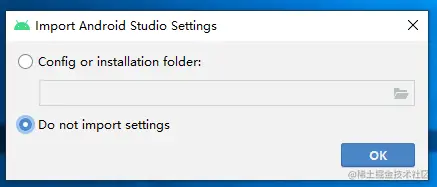 因为第一次安装,没有Android Studio的配置文件,所以,我们选择下面的选项,然后点击OK。