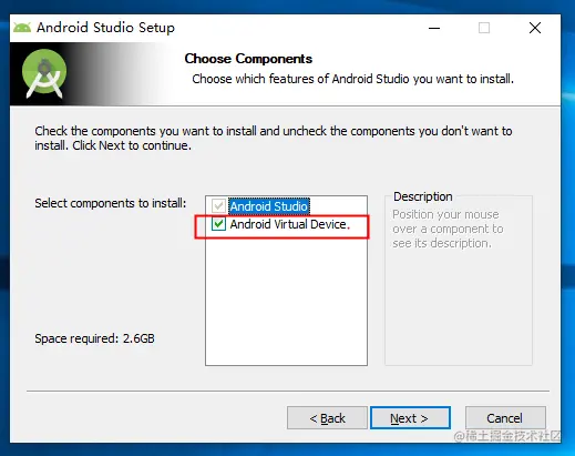 点击下一步,然后确保安卓虚拟机安装勾选上。