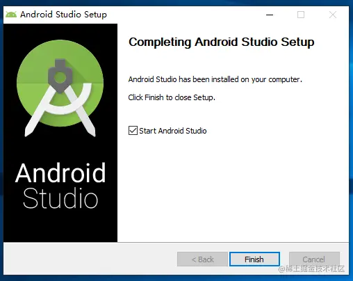 在安装完成界面,勾选启动Android Studio,然后点击Finish。