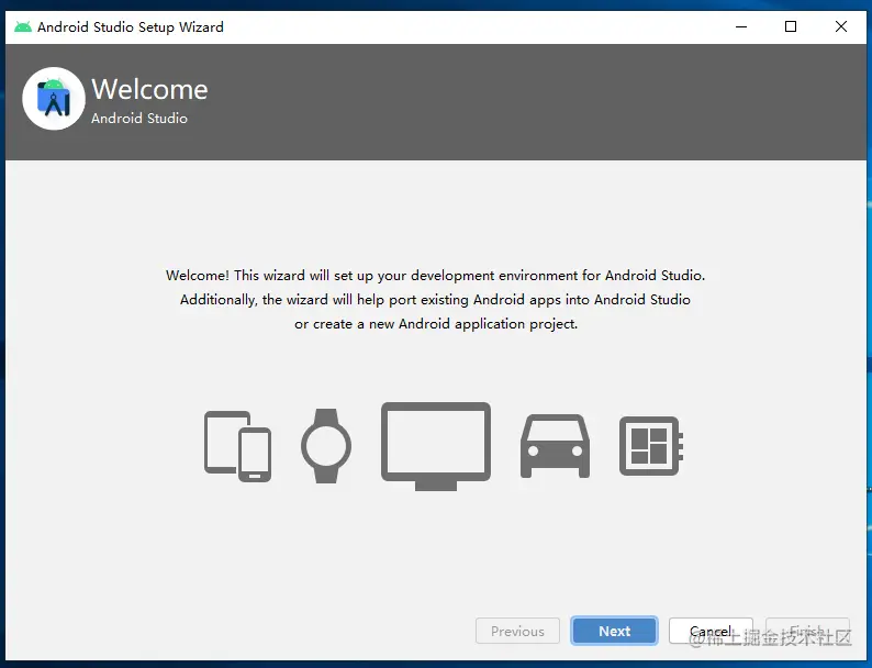 然后我们进入Android Studio配置引导界面,我们点击下一步。