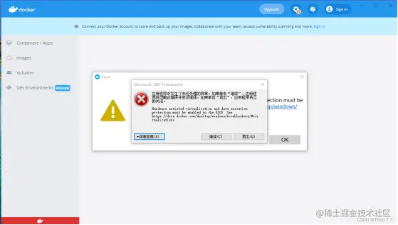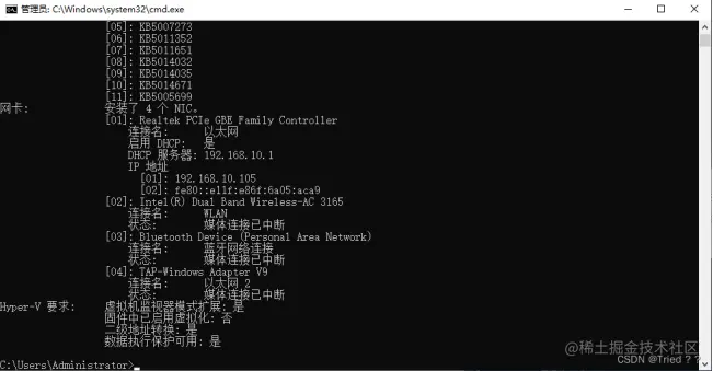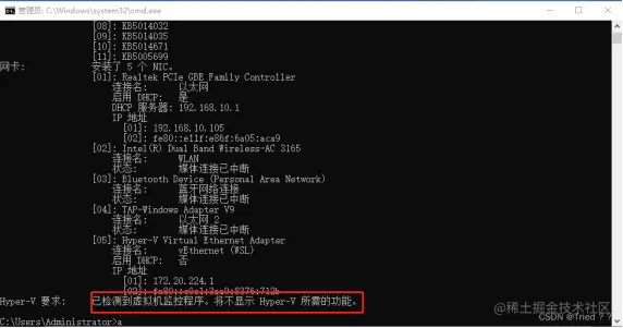 - 查看虚拟化是否开启,cmd 输入 systeminfo
