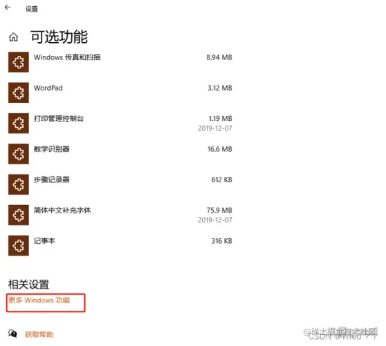在新窗口中,我们把页面用鼠标滚轮拉到最下面,找到 “更多 Windows 功能”
