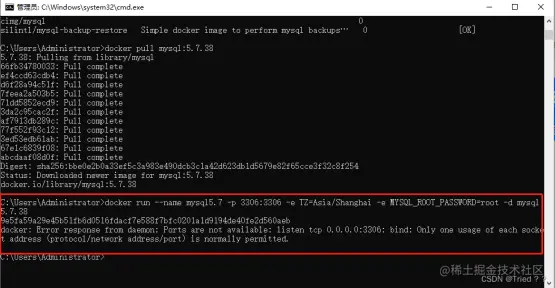 docker run --name mysql5.7 -p 3307:3306 -e TZ=Asia/Shanghai -e MYSQL_ROOT_PASSWORD=root -d mysql: 5.7.38