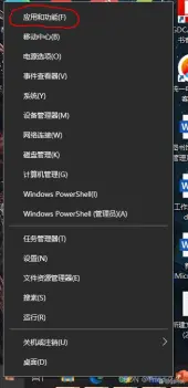 进入系统后,鼠标移至左下角任务栏的 “微软图标” 上,然后右键,在弹出的窗口中选择 “应用和功能”;