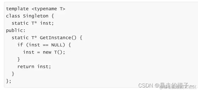 存在一个严重的问题, 线程不安全。第一次调用 GetInstance 的时候, 如果两个线程同时调用, 可能会创建出两份 T 对象的实例。
