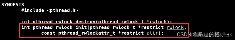 *pthread_rwlock_t restrict rwlock: 传入定义的pthread_rwlock_t变量的地址