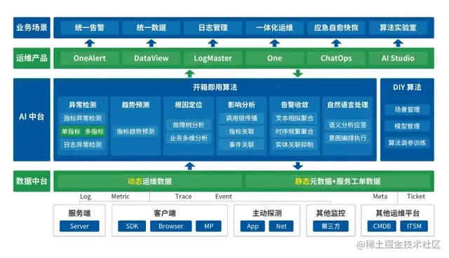 博睿数据的AIOps的核心是“数据+AI+产品+场景”四合一的综合解决方案。多年来,博睿数据积极拥抱新技术变革的浪潮,并基于AI和机器学习技术,自主研发了“数据接入、处理、存储与分析技术”核心技术体系,全面布局智能基线、异常检测、智能告警、关联分析、根因分析等丰富且广泛的智能运维功能,并将AIOps能力融入端到端全栈监控产品线,为传统企业提供强大的数据处理、存储和分析的软件工具。