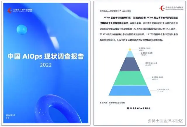 近日,由中国信通院、中国通信标准化协会主办的2022首届XOps产业生态峰会在北京成功举办,会上重磅发布了《中国AIOps现状调查报告(2022)》,分析了国内AIOps能力建设基本情况、AIOps场景应用情况、AIOps发展趋势与挑战,并遴选出具有代表性的AIOps实践案例,为梳理中国AIOps产业发展脉络,促进智能运维领域技术与应用的有效落地提供了详细的指引和参考。