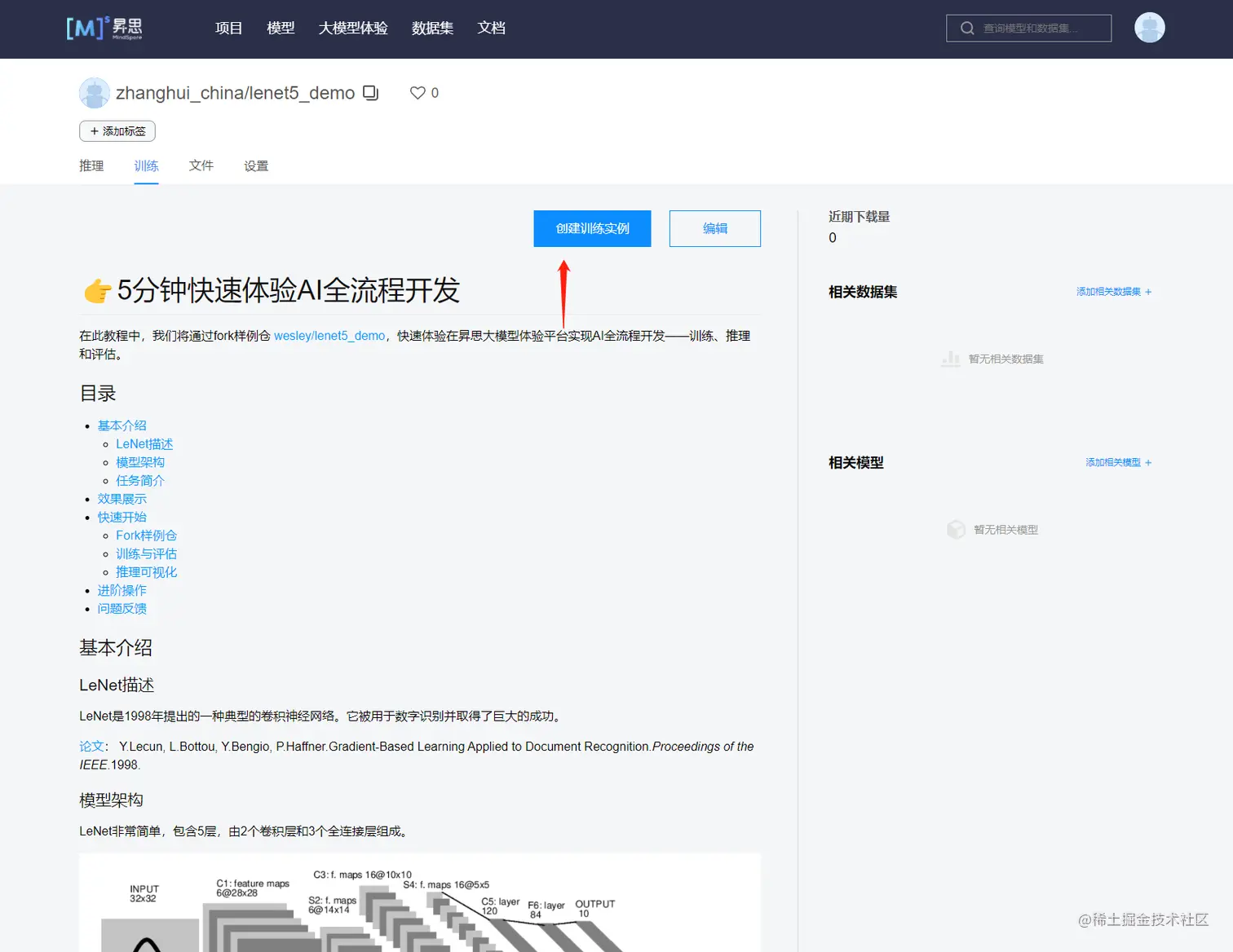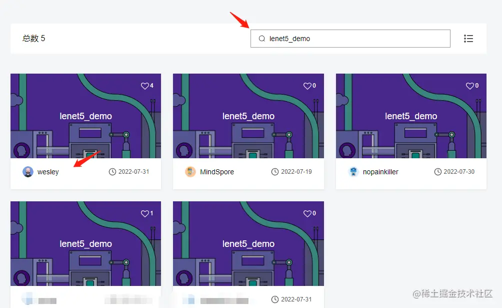 点击”项目”,在下面的搜索栏搜索:lenet5_demo