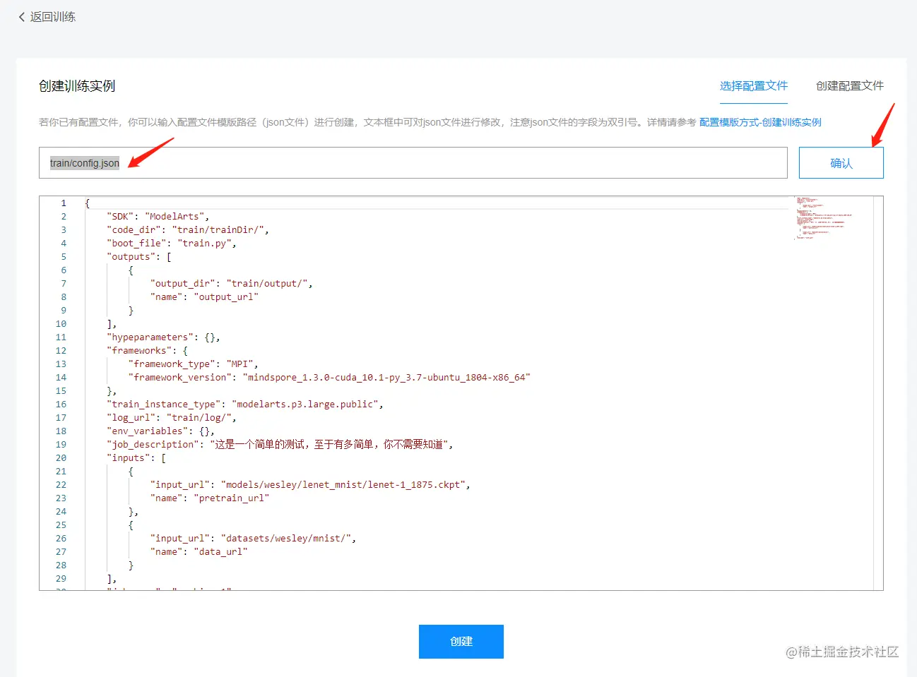 在json文件名输入栏输入:train/config.json ,点击确认: