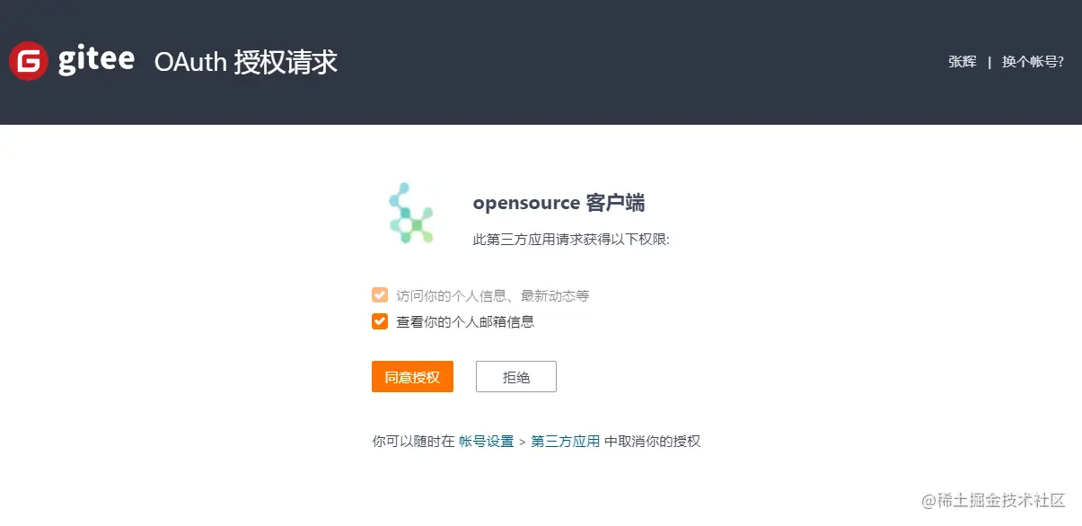 张小白选择了 gitee登陆,会弹出以下窗口: