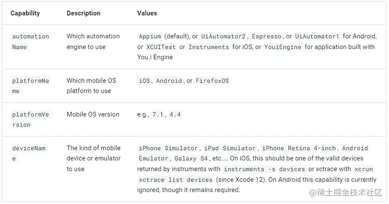 更多 Capabilities 信息请查看官网:Desired Capabilities - Appium