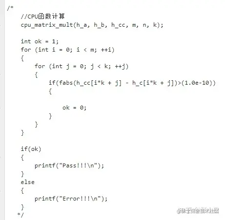 将 矩阵从100改为1000试试,但是发现一旦改为1000后,CPU计算可能算不过来了,需要将CPU那部分代码和后面比较的代码屏蔽掉。