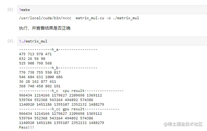 这个结果跟CPU计算的结果做了对比。显示Pass表示结果是一致的(其实张小白把两个结果都打印的出来,当然也是一致的)