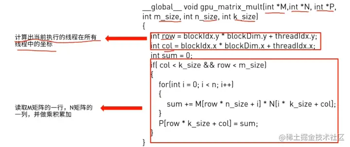 这也是一般CUDA程序的套路——把for loop展开成每个线程处理其中的一步。