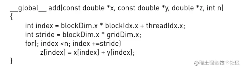 add<<<grid_size, block_size>>>(d_x, d_y, d_z, N);