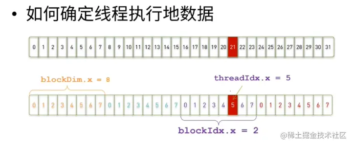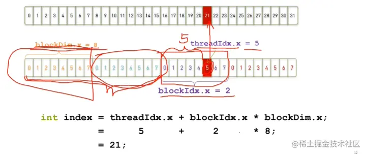 具体的索引位置 index = blockDim.x * blockIdx.x + threadIdx.x