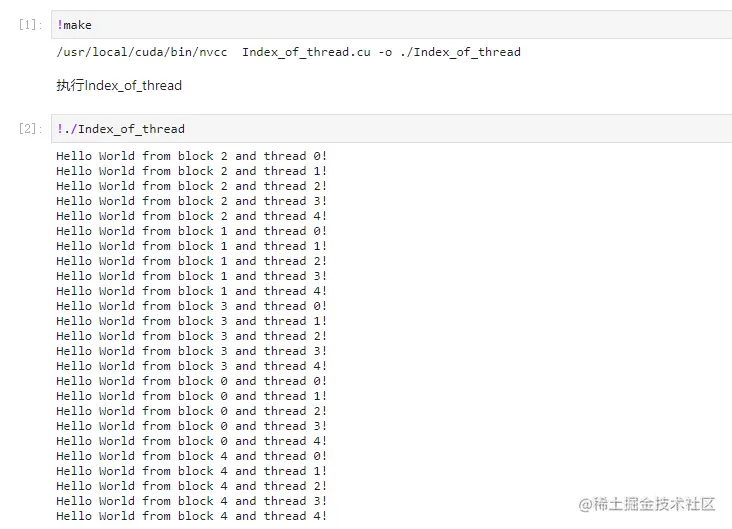 //仅仅是在原先代码的基础上打印 blockIdx.x 和 threadIdx.x