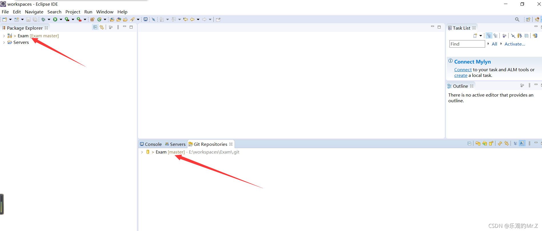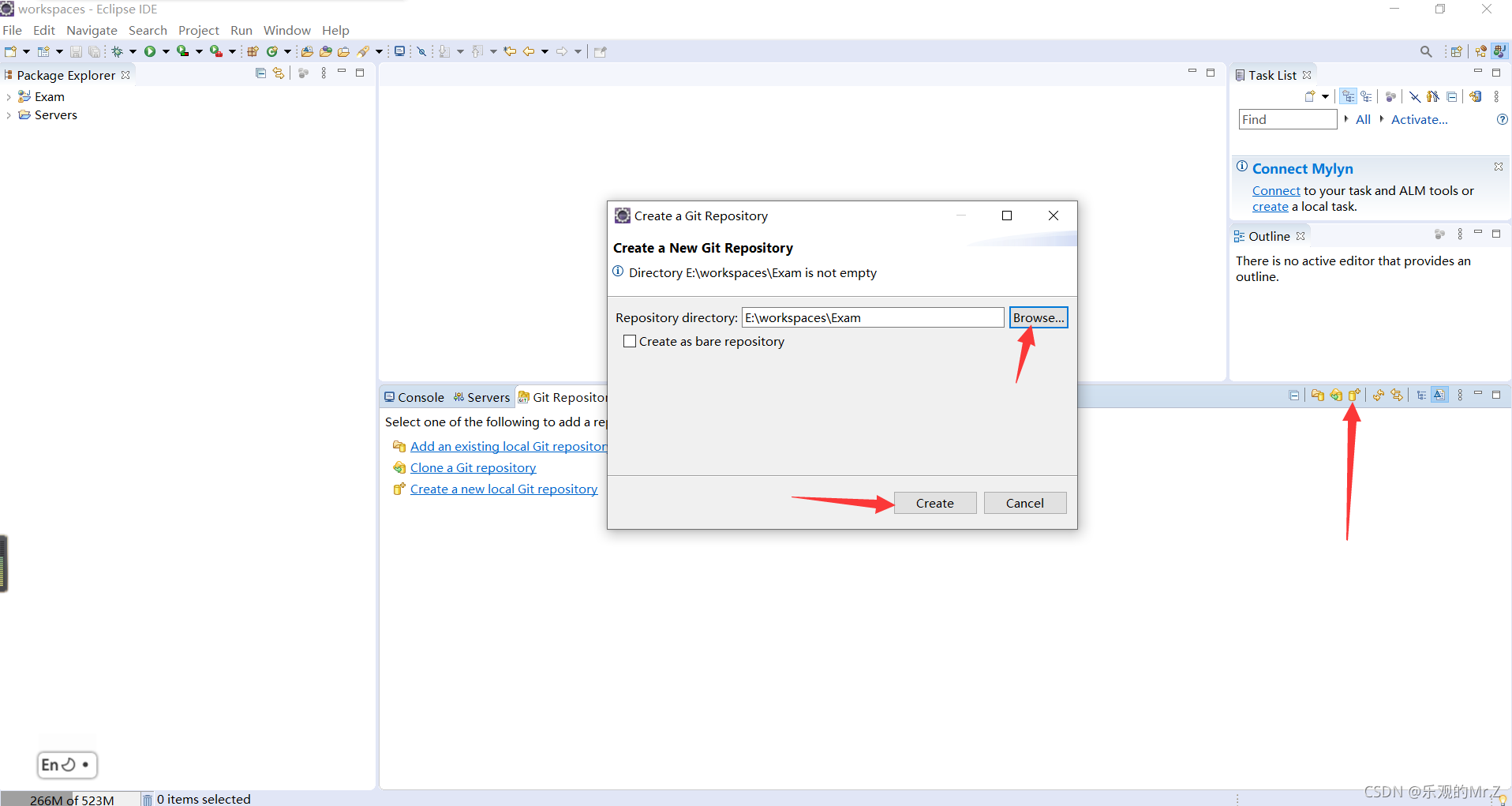 六、在eclipse的Git Repositories区域点击"带加号的小油桶"==> 点击Browse切换路径找到你所要上传的项目,这时候你的项目就会出现小油桶以及问号在上面。