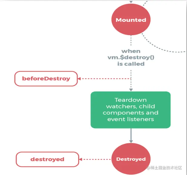 1.当$destroy()被调用 – 比如组件DOM被移除(例v-if)