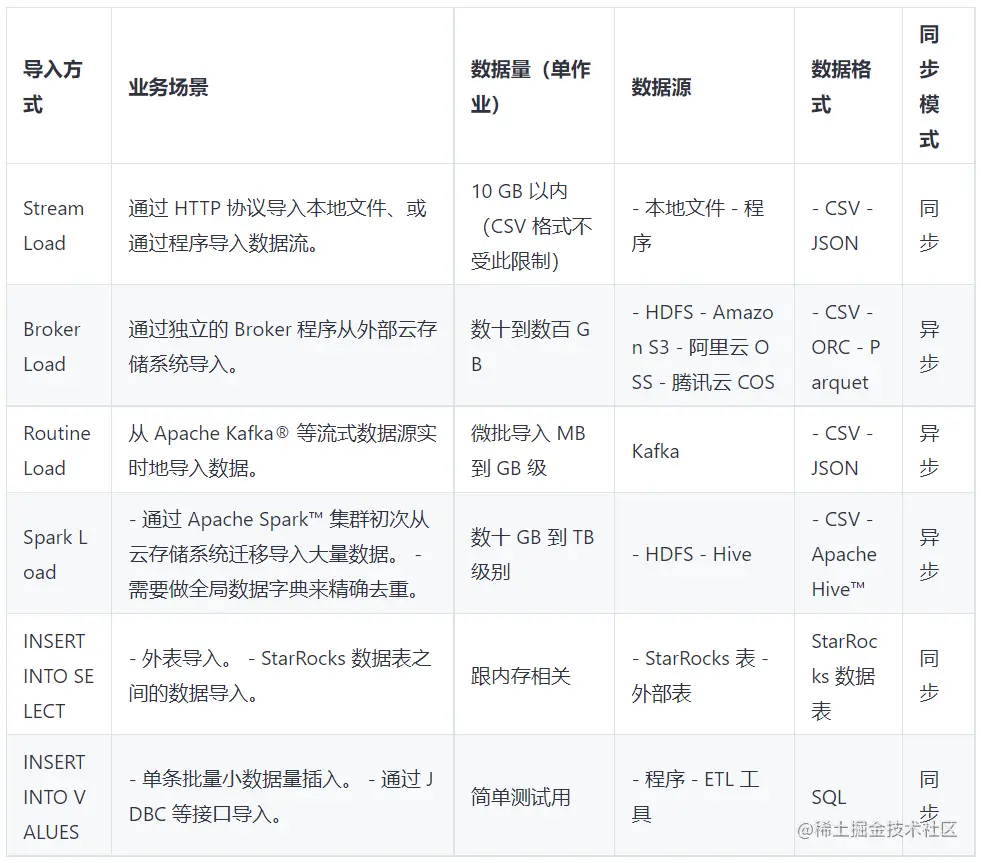 StarRocks 支持两种导入模式:同步导入和异步导入。