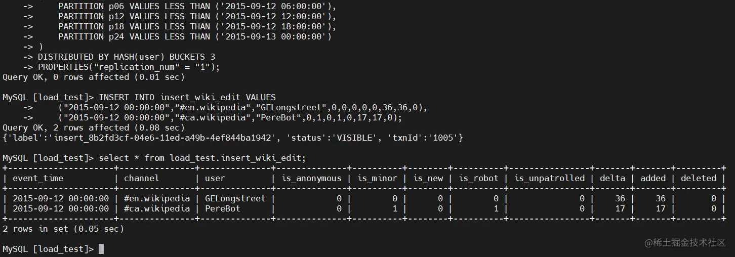INSERT INTO insert_wiki_edit PARTITION(p06, p12)