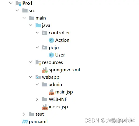 @Controller //spring的注解,交给spring去创建对象 public class Action { @RequestMapping(value = "/demo") public String demo(){ System.out.println("访问服务器get"); return "main";//可以跳到/admin/main.jsp页面上去 } }