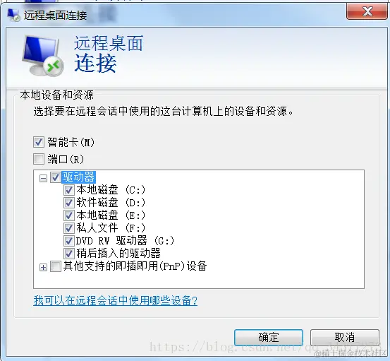 点击:选项---本地资源----详细信息(把要共享的本地磁盘选中),确定连接就完成了资源共享