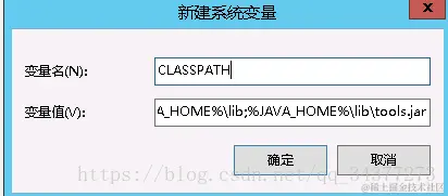 新建 CLASSPATH 变量,变量值填写 .;%JAVA_HOME%\lib;%JAVA_HOME%\lib\tools.jar(注意最前面有一点)