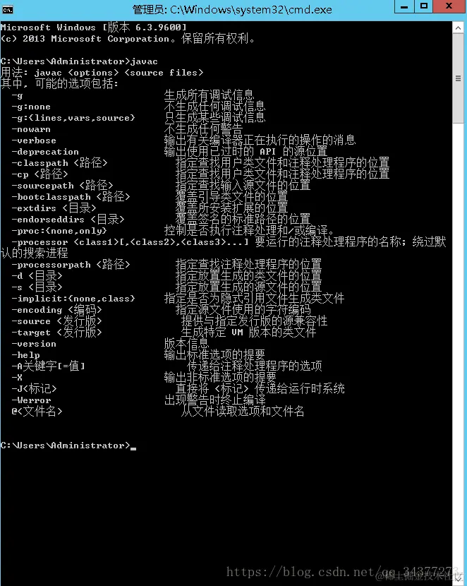 输入javac命令,出现内容说明jdk环境变量配置完毕