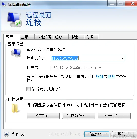 打开电脑的远程桌面:输入要连接云服务器的IP地址: