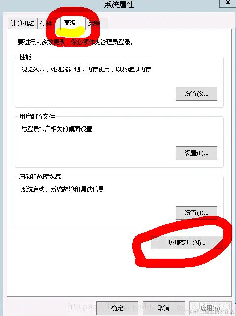 选择:高级 ---找到下方的环境变量