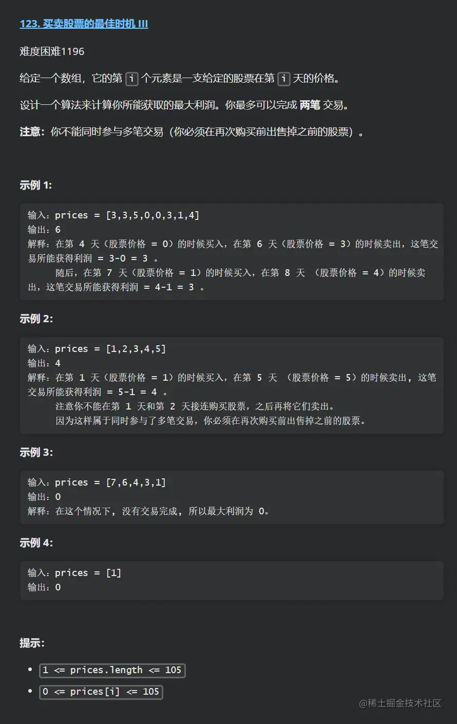 本次刷题日记的第 89 篇,力扣题为:123. 买卖股票的最佳时机 III