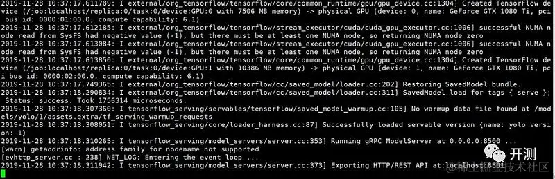 我们对比了TensorFlow Serving 仅使用CPU和使用GPU加速两种情况下YOLO服务的性能,对比发现,使用GPU加速后处理一次请求的时间是50ms左右,不使用GPU加速处理一起请求需要280ms左右。响应速度提升5~6倍左右。