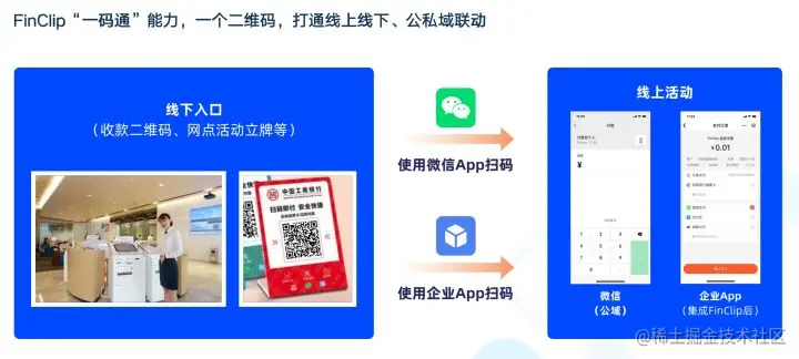 还有还有,FinClip 还支持「一码通」功能,通过微信或是通过集成了FinClip sdk 的APP 扫描同一个二维码,打开的小程序场景页面都是一致的,可实现线上线下、域内域外联动。