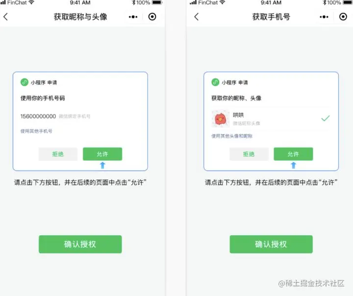 随后当用户打开非微信平台小程序时,如需要调用登录体系,则会引导用户打开微信查看对应页面进行授权,由 FinClip 完成用户登录数据同步。最终用户就可以借助微信完成用户登录了。