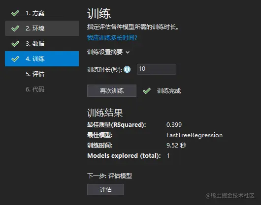 点击训练,大约2分钟,训练完成,输出界面会输出如下内容。