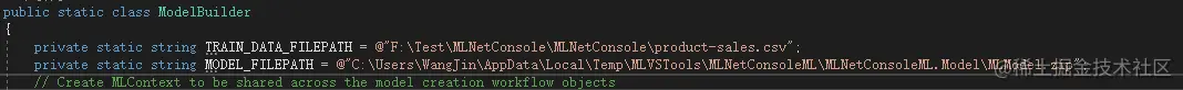再打开ModelBuilder文件,可以看到,这里一开始就配置了数据地址和模型地址,如下图: