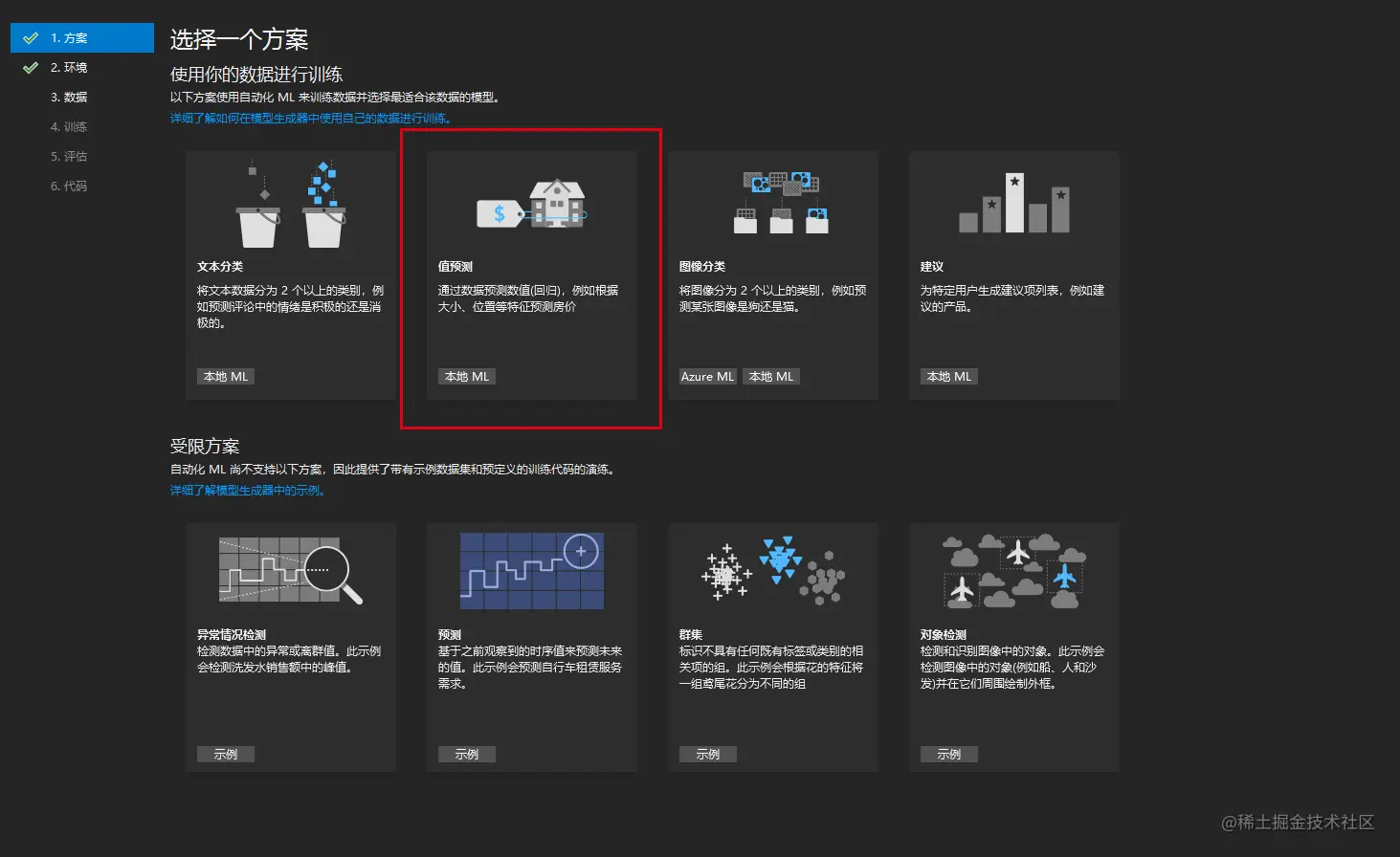然后我们可以看到,它提供了一些方案,如语义识别,图像识别,数值预测等。
