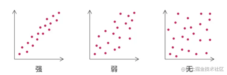 - 散点图适用于分析变量之间相关性的强弱,我们可以通过查看图上数据点的密度来确定相关性的引强弱