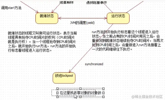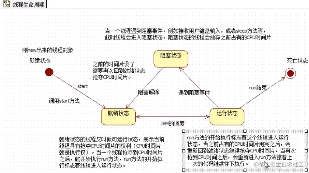 thread.start(); //启动线程 start方法使线程处于就绪队列,等待CPU调用