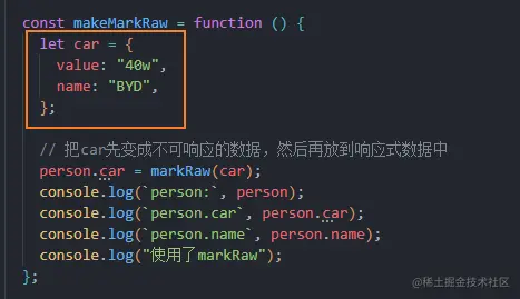 markRaw就是把某个数据,标记为普通对象,当我们把它放到响应式对象中,也依然是非响应式的