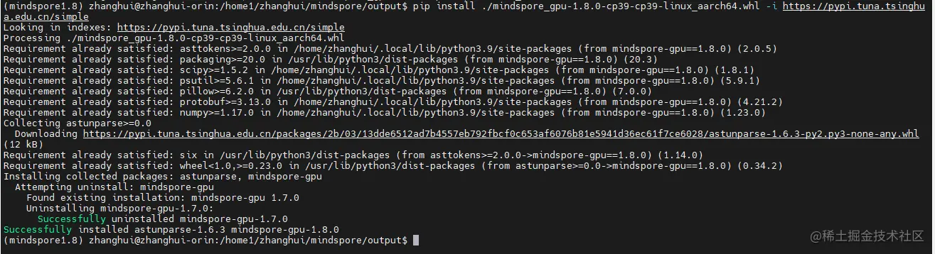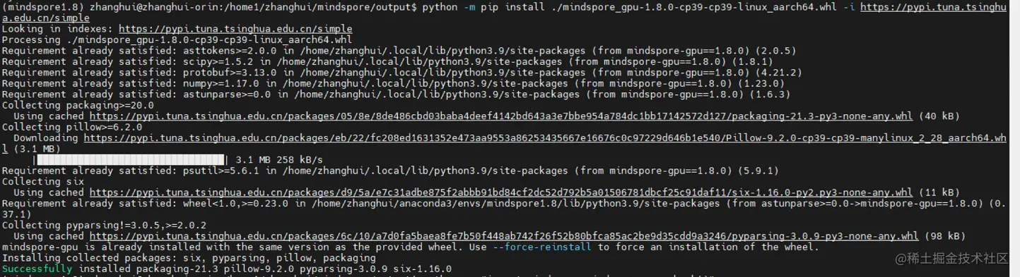 pip install ./mindspore_gpu-1.8.0-cp39-cp39-linux_aarch64.whl -i pypi.tuna.tsinghua.edu.cn/simple\